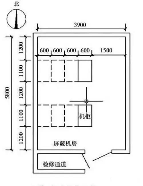 除此之外,還需要考慮預留施工防護空間,并盡量避免調整現有機房管路和屏蔽門體位置。以圖1為例,在同等條件下,應該優先考慮將機房向東側和北側擴展。因為南側是機房屏蔽門體和檢修通道,向南擴展需要將其拆除后重新安裝,施工難度較大,特別是屏蔽門體本身是屏蔽機房最重要的防護部位,一旦重新安裝后屏蔽效果降低,會對機房整體屏蔽效能產生較大影響。如果向西側擴容,擬拆的墻體緊貼機柜,在實施過程中缺少施工作業面,不利于對現有設備的防護。因此,在制定擴容方案時需要綜合考慮各種因素,在滿足建設目標的前提下,盡可能減少投資,降低實施難度。
